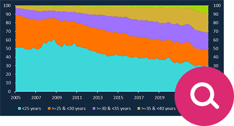 The duration of mortgages (and the total interest paid) has been growing since 2005.